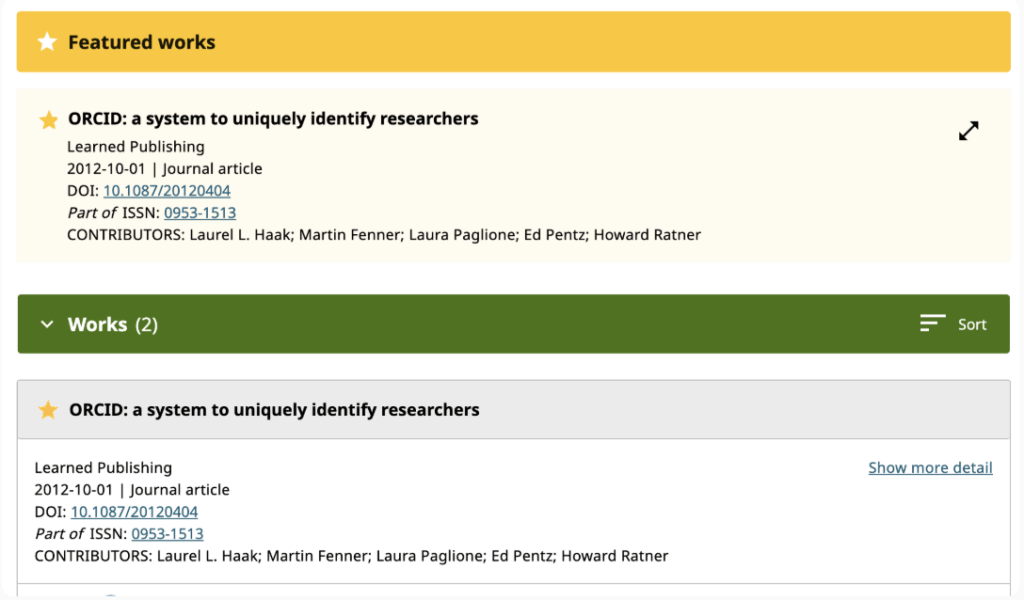 Díky této funkci mohou výzkumníci snadno upozornit na své nejvýznamnější publikace či výstupy. Nová sekce tak proměňuje profil ORCID z digitálního životopisu v nástroj, který pomáhá výzkumníkům lépe vyniknout a prezentovat to, na čem nejvíce záleží.